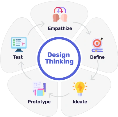 five-step process (empathize, define, ideate, prototype, test) to solve problems