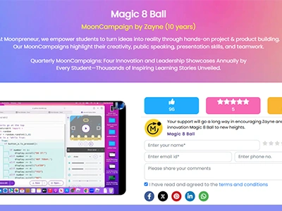 The Moonpreneur STEM Ambassador Program offers a personalized, verifiable profile page that tells a complete story—from STEM events to webinars, podcasts, and hands-on projects.