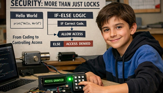 At Age 9 Completing my Smart Entrance system was a major breakthrough. I’ve learned to think like a security engineer, predicting how a user will interact with my tech. I now feel confident using Python to solve real problems and am excited to see where my next project takes me.