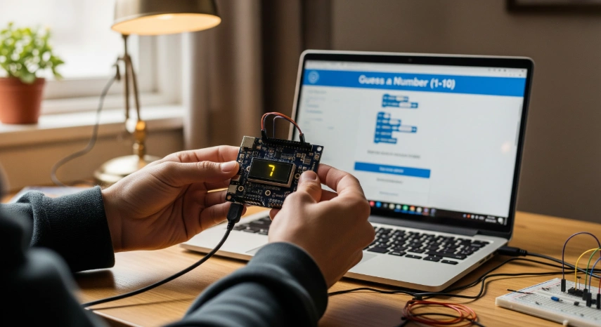 A fun and intuitive game where you guess a number, and the Micro:bit reveals whether your guess is correct. It introduces basic probability and engages users in an exciting, interactive way.